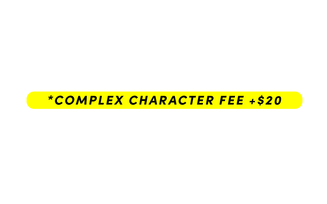 + Complex Character Fee (high detail, multiple markings, patterns, accessories, or color complexity)